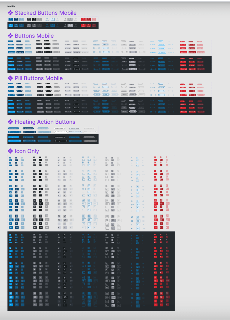 Create mobile components. This included: fixing light mode components, creating variants, testing assets.