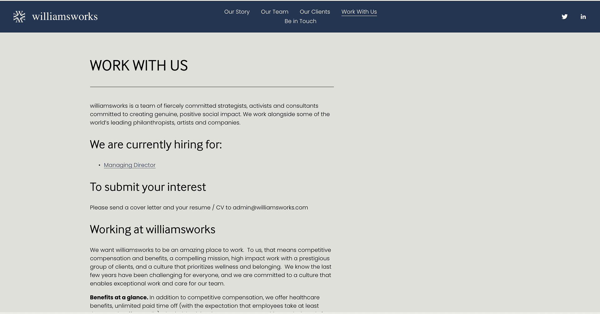 A fully redesigned and launched website that better communicates the scope and spirit of williamsworks