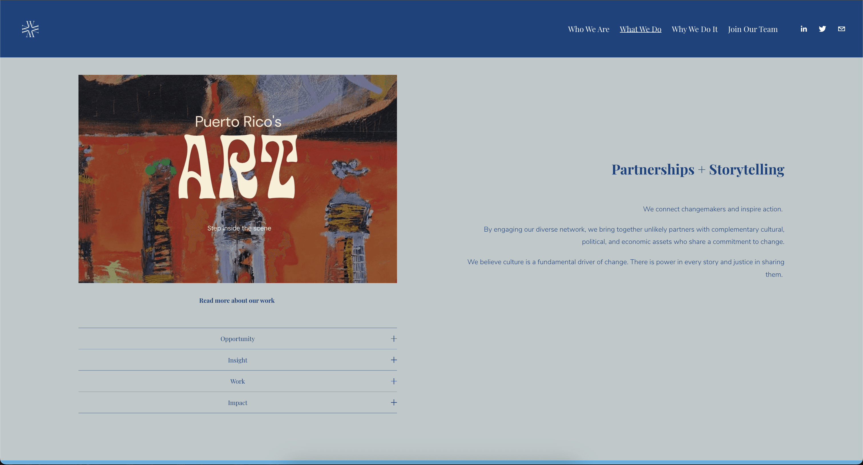 Redesigned the marketing website for williamsworks (ww), a strategic advisory firm for social impact orgs. Focused on improving clarity, credibility, and storytelling through modern UX patterns and modular layouts. Final designs were implemented in 2022 and continue to support the brand’s digital presence.